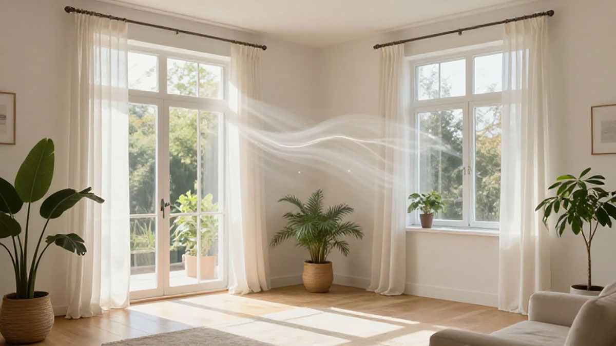 - Membuat ventilasi silang dengan membuka jendela di sisi yang berlawanan untuk menciptakan aliran udara.