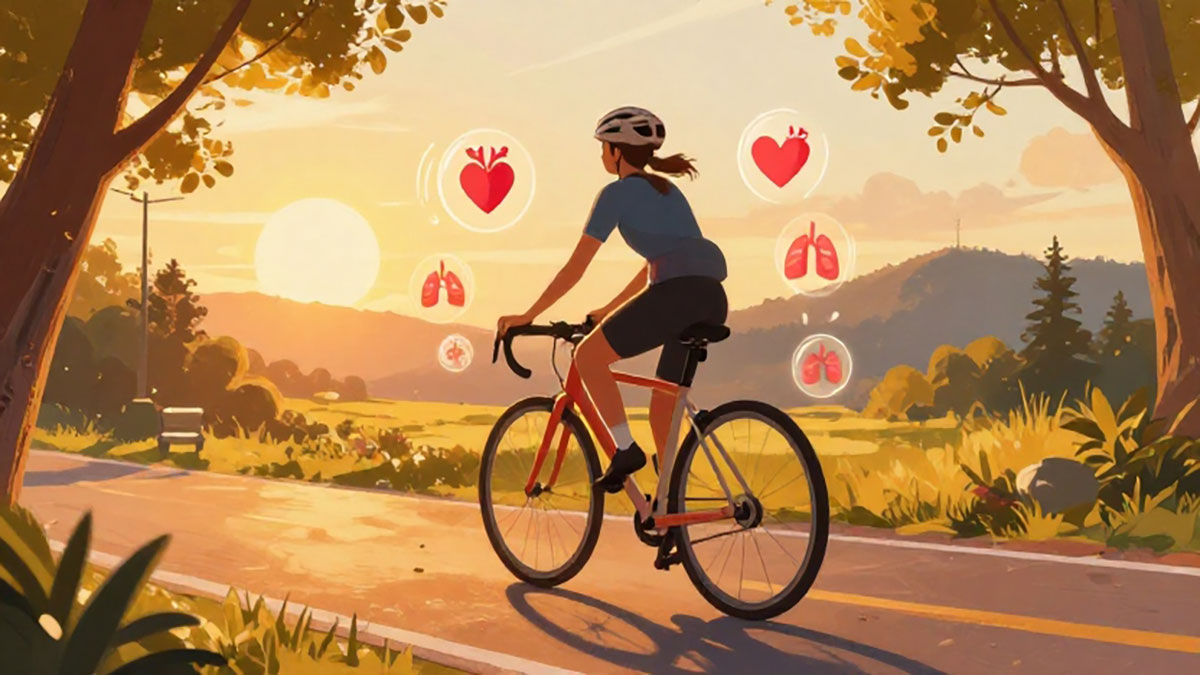 Aktivitas ini membantu memperkuat otot jantung serta menurunkan risiko penyakit jantung seperti tekanan darah tinggi, kolesterol tinggi, dan penyumbatan pembuluh darah. Dengan bersepeda secara rutin, jantung dapat bekerja lebih efisien dan tetap sehat dalam jangka panjang.